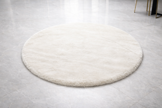 Rond Fluffy Vloerkleed Gebroken wit – Ø 120 cm