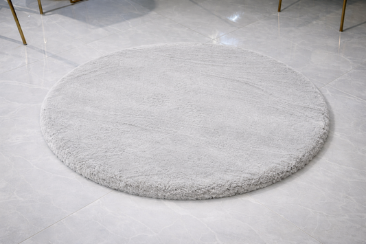 Rond Fluffy Vloerkleed Licht Grijs – Ø 120 cm