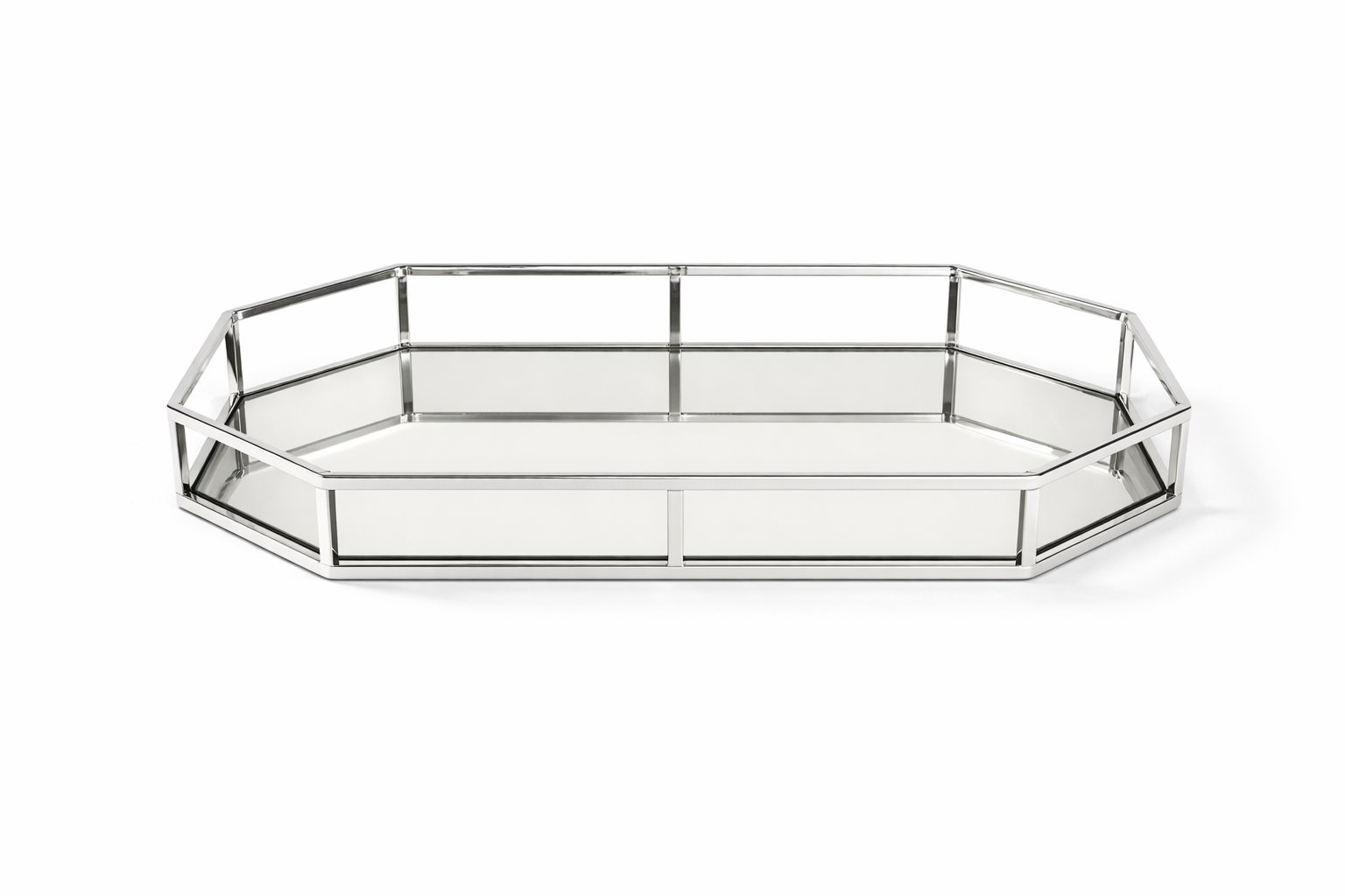 - Achthoekig dienblad met spiegelende glazen bodem