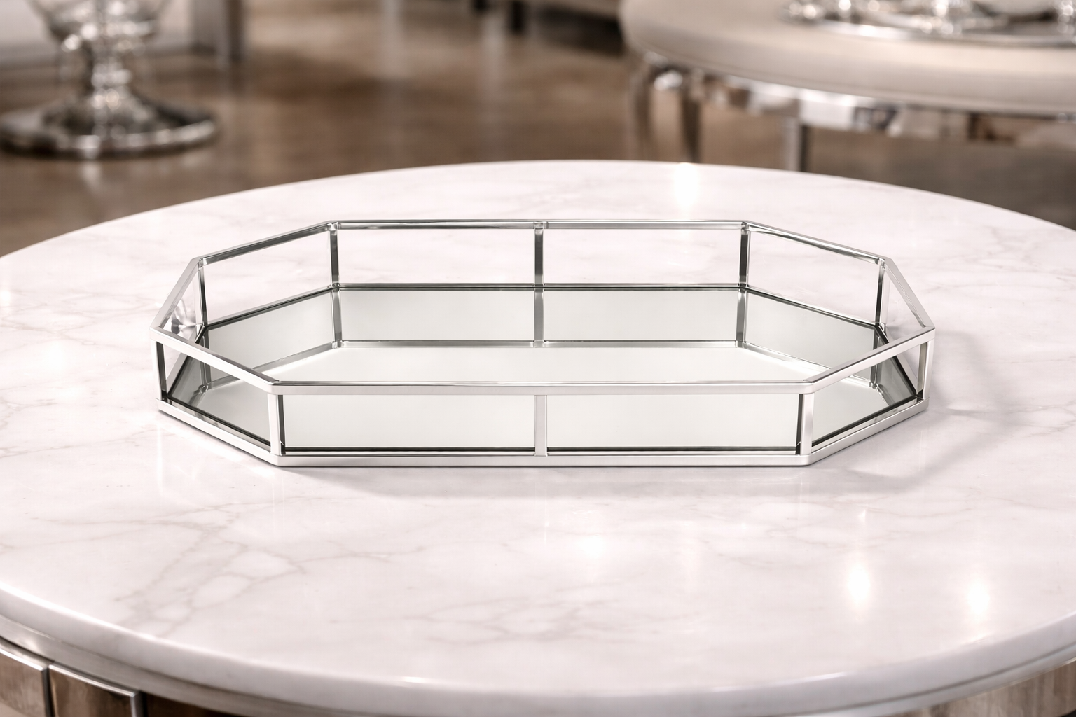 Achthoekig Spiegel Dienblad met Zilverkleurig Frame