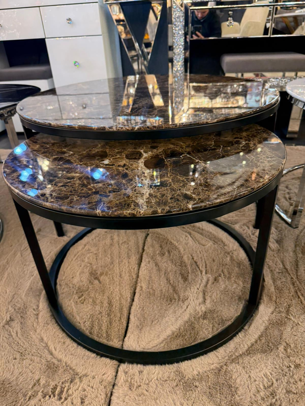 Doblo Salontafel Set – Marmerlook Zwart Bruin