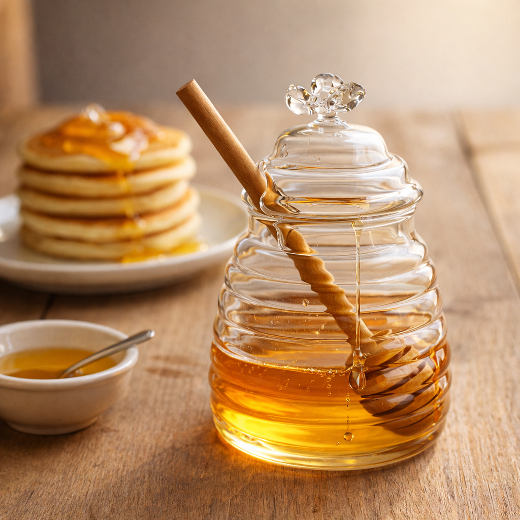 Perfect voor dagelijks gebruik tijdens het ontbijt of brunch, maar ook zeer geschikt als stijlvol serveeritem bij pannenkoeken, thee of desserts. Dankzij het minimalistische ontwerp past deze honingpot moeiteloos in zowel moderne als klassieke interieurs.
