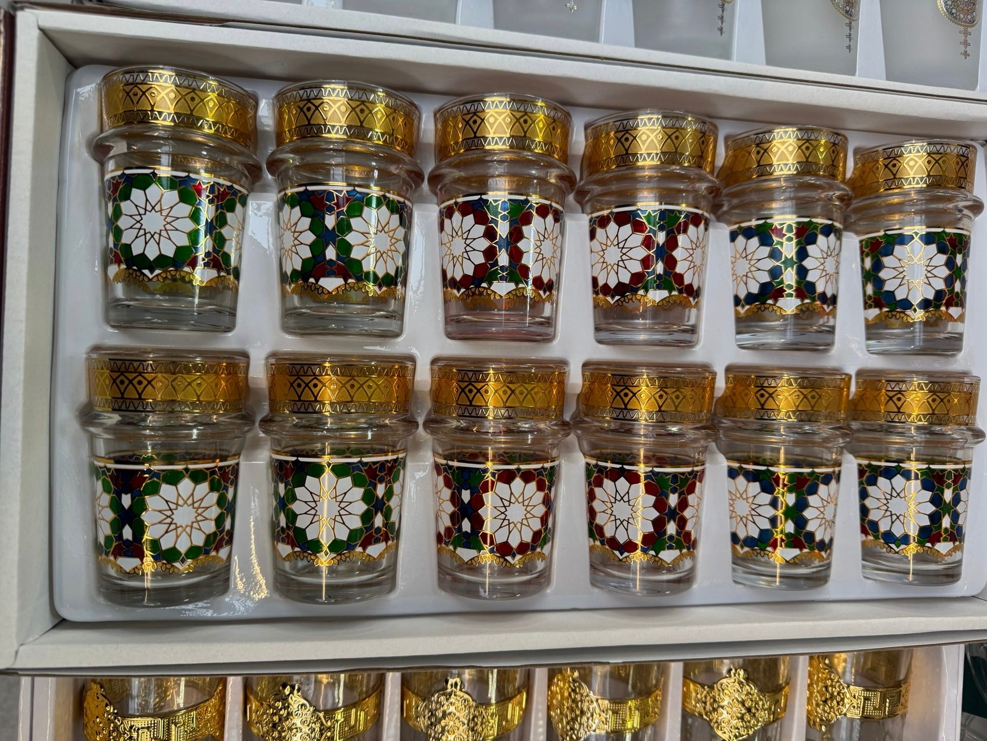 Deze theeglazen zijn perfect voor het serveren van traditionele muntthee, maar ook ideaal voor speciale gelegenheden, gasten of als luxe aanvulling op een Marokkaanse tafelschikking.